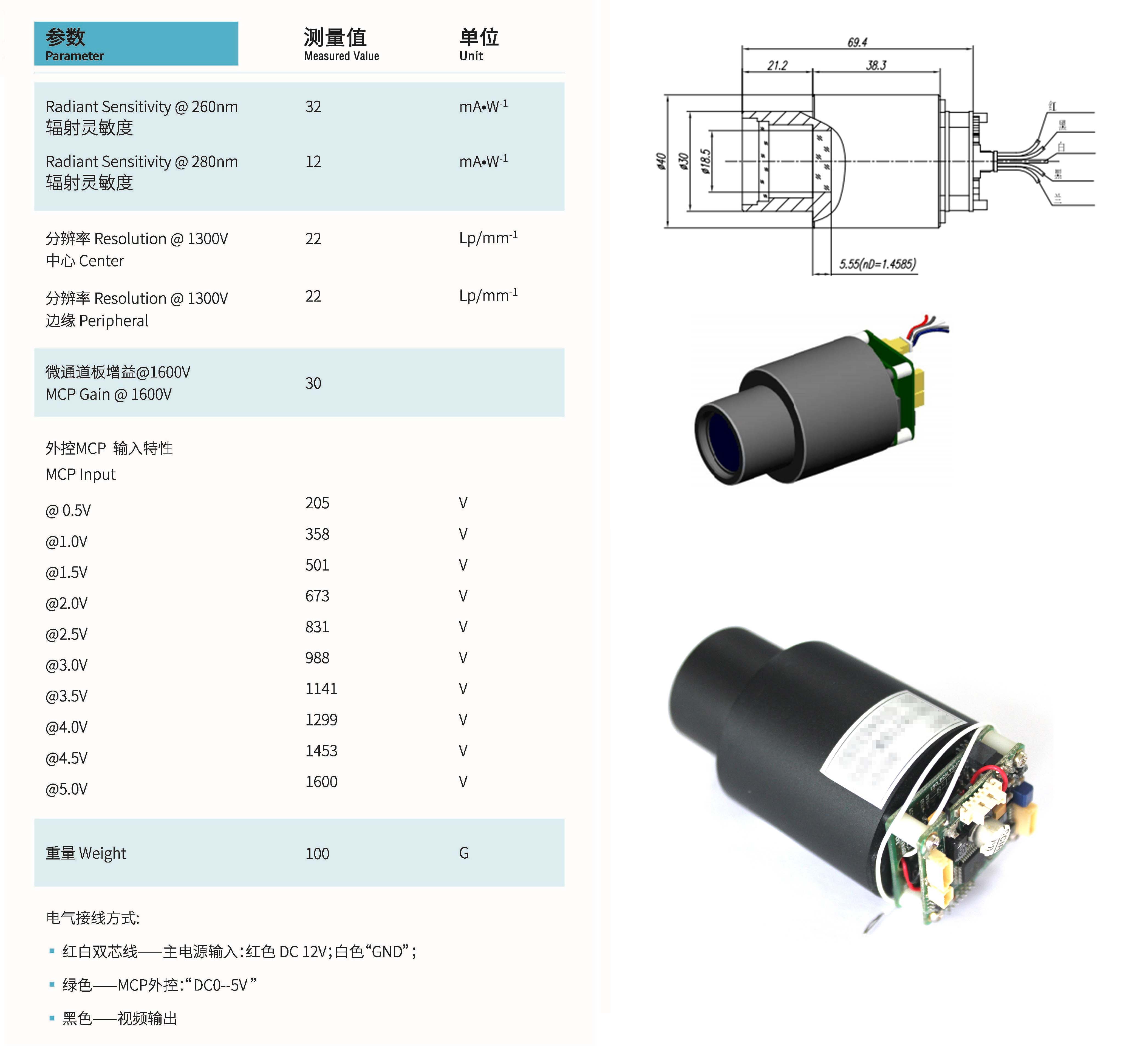 紫外像增强器技术特性:
